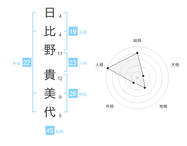 日比野 貴美代さんを姓名の画数から五運を鑑定
