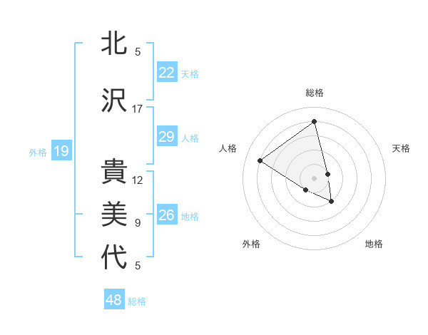 北沢 貴美代さんを姓名の画数から五運を鑑定