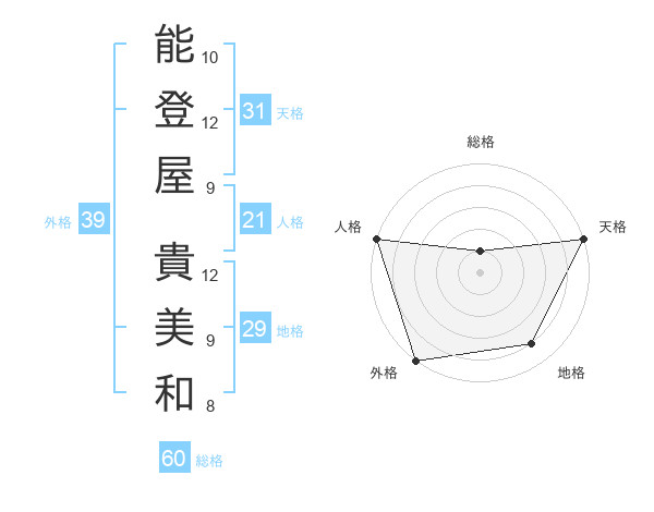 能登屋 貴美和さんを姓名の画数から五運を鑑定