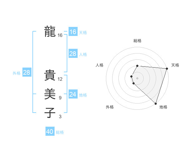 龍 貴美子さんの天格は16画の5点!