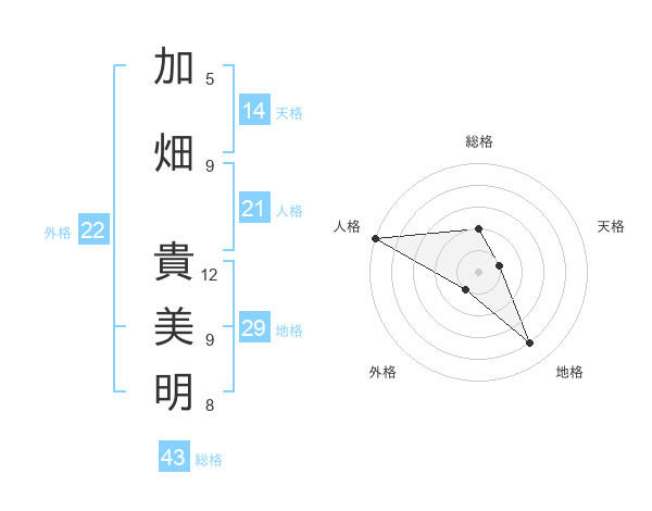 加畑 貴美明さんを姓名の画数から五運を鑑定
