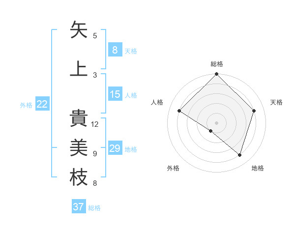 矢上 貴美枝さんの総格は37画の5点!