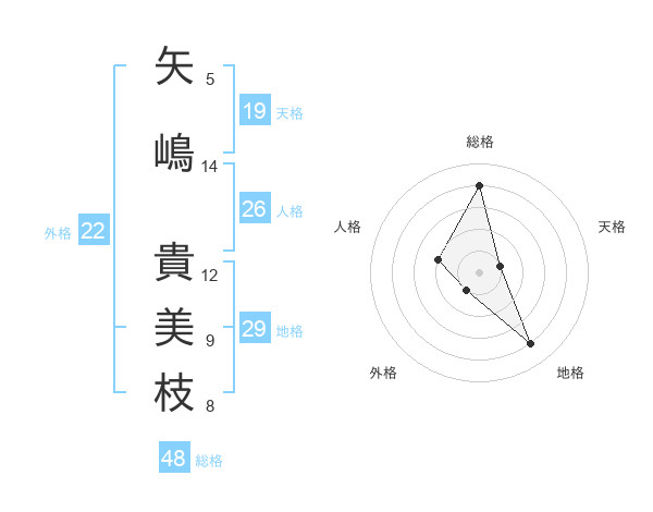 矢嶋 貴美枝さんを姓名の画数から五運を鑑定