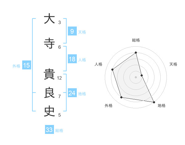 大寺 貴良史さんを姓名の画数から五運を鑑定
