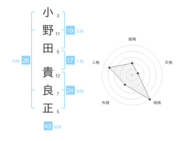 小野田 貴良正さんを姓名の画数から五運を鑑定