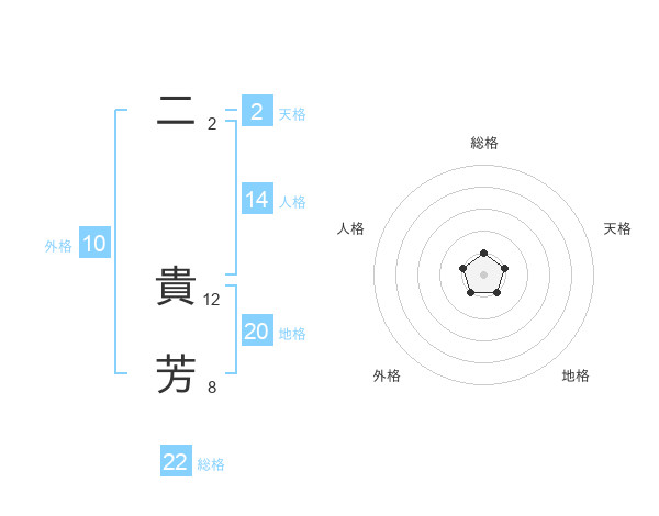 二 貴芳さんの総格は22画の1点!