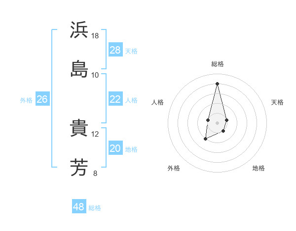 浜島 貴芳さんの総格は48画の4点