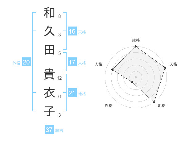 和久田 貴衣子さんを姓名の画数から五運を鑑定