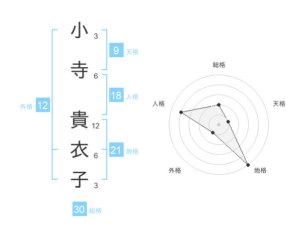 小寺 貴衣子さんを姓名の画数から五運を鑑定