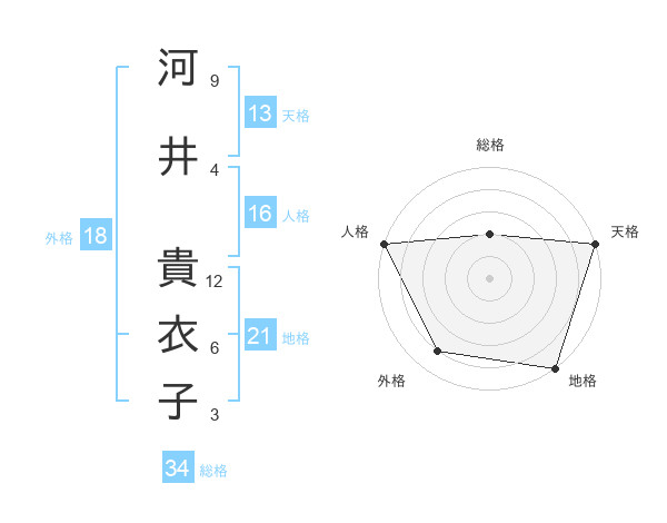 河井 貴衣子さんの天格は13画の5点!