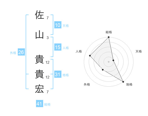 佐山 貴貴宏さんを姓名の画数から五運を鑑定