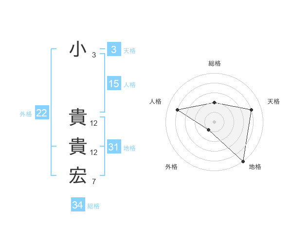 小 貴貴宏さんの総格は34画の2点!