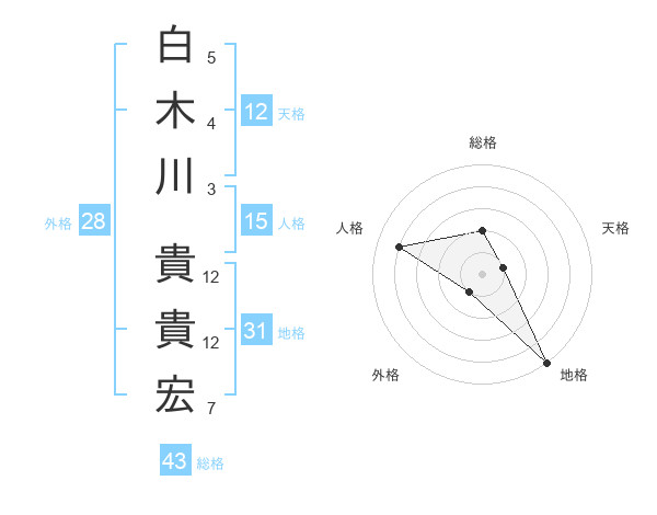 白木川 貴貴宏さんの地格は31画の5点!
