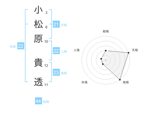 小松原 貴透さんを姓名の画数から五運を鑑定