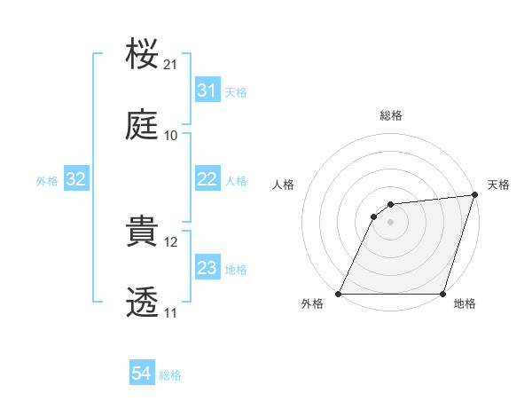 桜庭 貴透さんの天格は31画の5点!