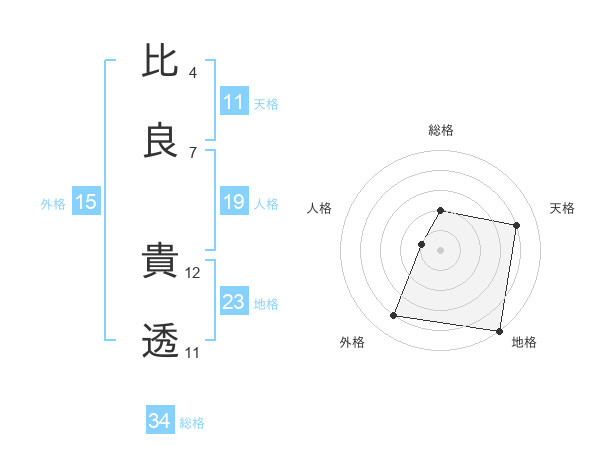比良 貴透さんの総格は34画の2点!