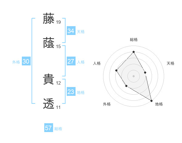 藤蔭 貴透さんを姓名の画数から五運を鑑定