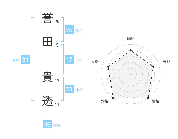 誉田 貴透さんの外格は31画の5点!