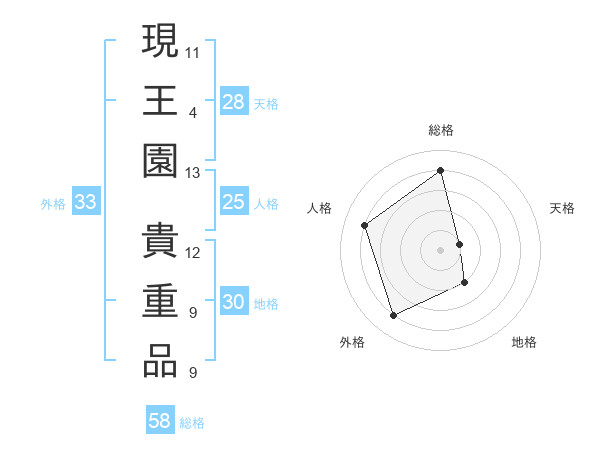 現王園 貴重品さんの総格は58画の4点!