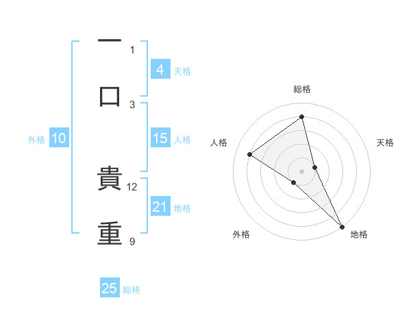 一口 貴重さんの総格は25画の4点!