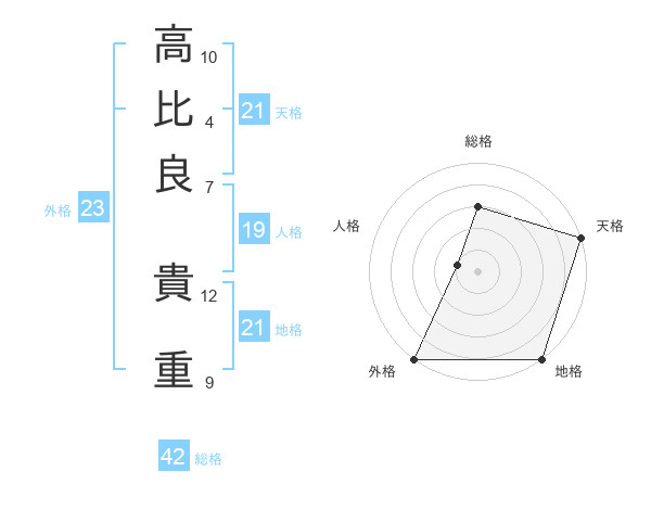 高比良 貴重さんを姓名の画数から五運を鑑定