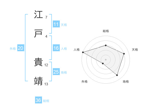 江戸 貴靖さんを姓名の画数から五運を鑑定