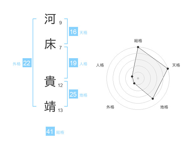 河床 貴靖さんの天格は16画の5点!