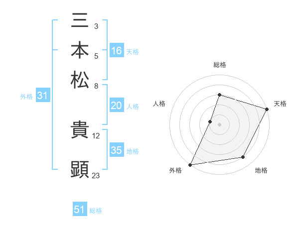 三本松 貴顕さんを姓名の画数から五運を鑑定