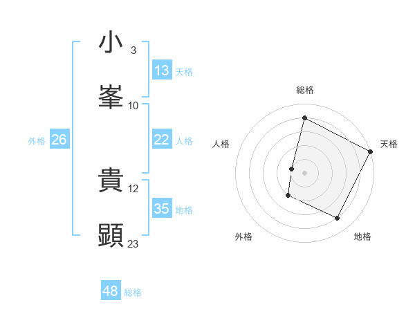 小峯 貴顕さんを姓名の画数から五運を鑑定
