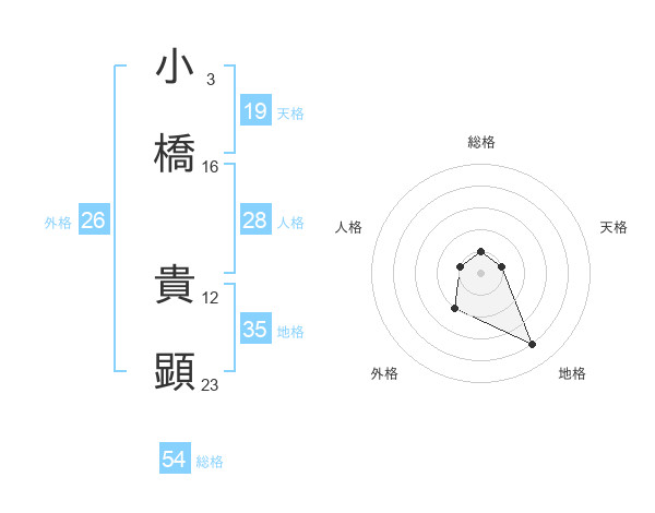 小橋 貴顕さんを姓名の画数から五運を鑑定