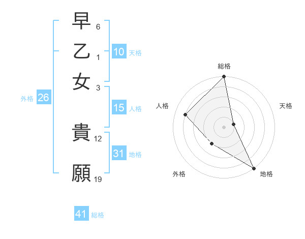 早乙女 貴願さんの地格は31画の5点!