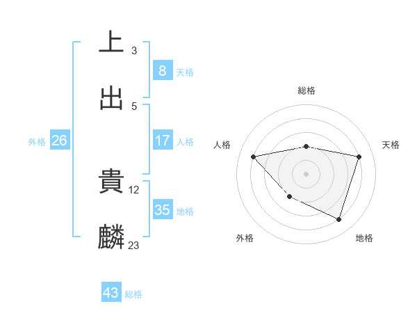 上出 貴麟さんの総格は43画の2点!