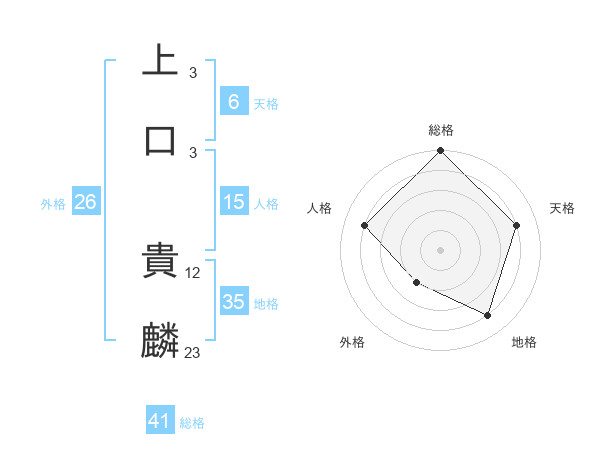 上口 貴麟さんを姓名の画数から五運を鑑定