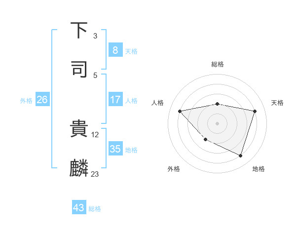 下司 貴麟さんの総格は43画の2点!