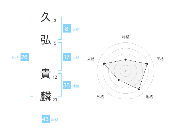 久弘 貴麟さんを姓名の画数から五運を鑑定