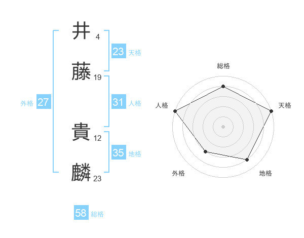 井藤 貴麟さんを姓名の画数から五運を鑑定