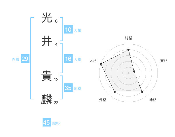 光井 貴麟さんの総格は45画の4点!
