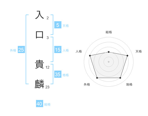 入口 貴麟さんの総格は40画の2点!