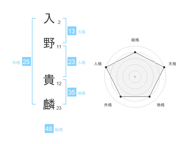 入野 貴麟さんを姓名の画数から五運を鑑定