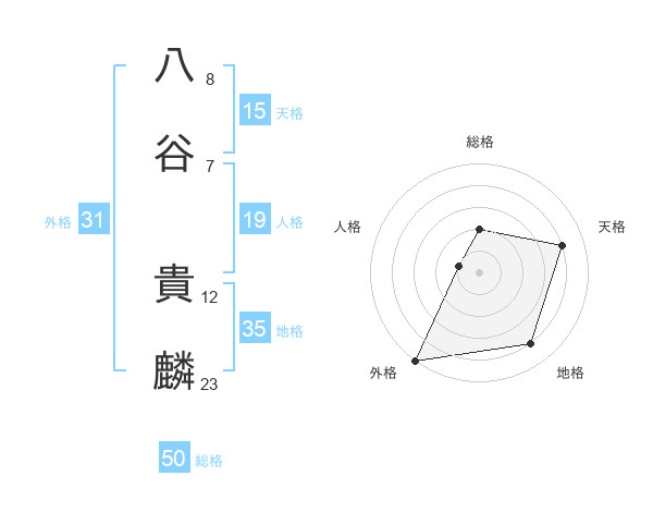 八谷 貴麟さんの総格は50画の2点!