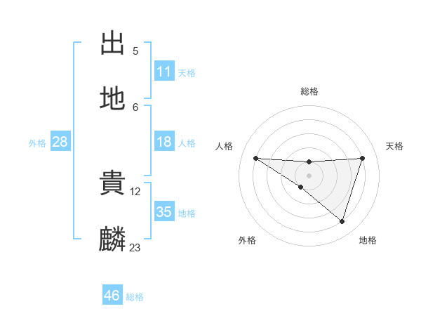 出地 貴麟さんの外格は28画の1点!