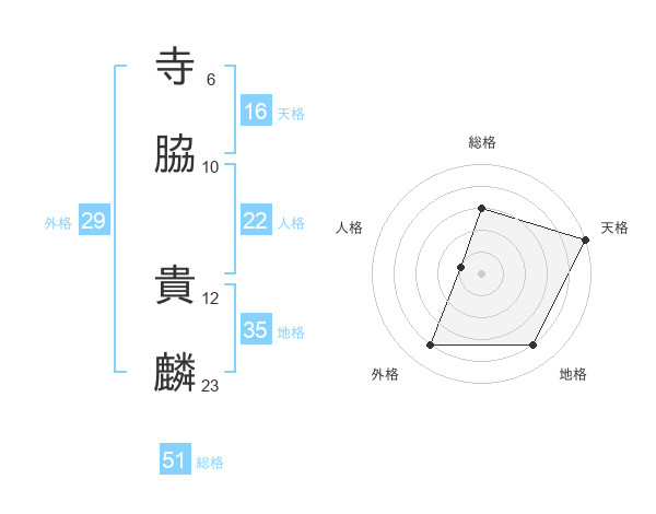 寺脇 貴麟さんの総格は51画の3点!