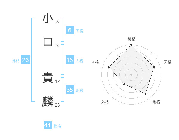 小口 貴麟さんを姓名の画数から五運を鑑定