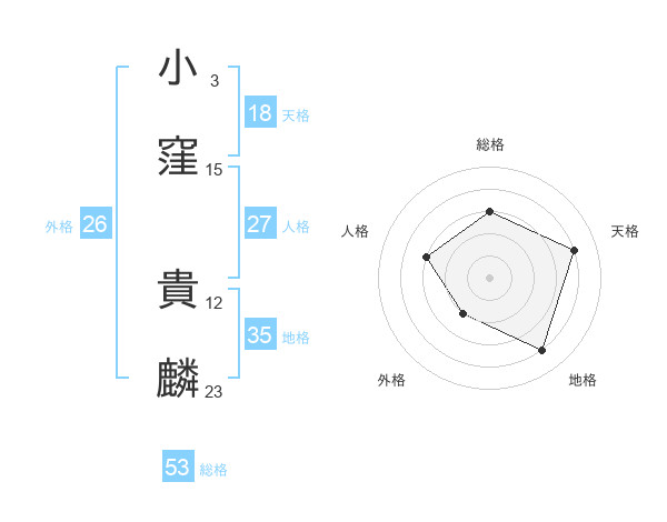 小窪 貴麟さんを姓名の画数から五運を鑑定