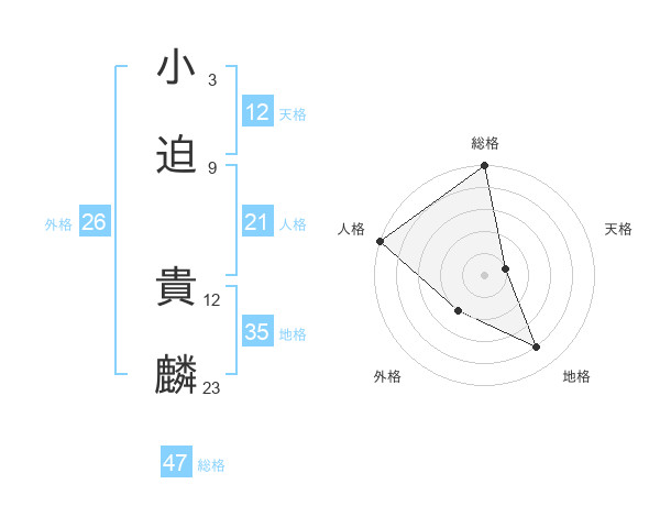 小迫 貴麟さんの総格は47画の5点!