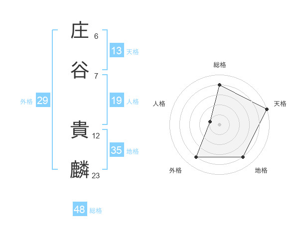 庄谷 貴麟さんを姓名の画数から五運を鑑定