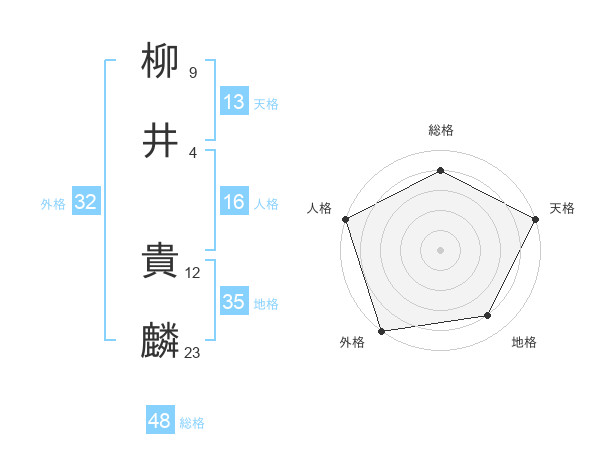 柳井 貴麟さんを姓名の画数から五運を鑑定