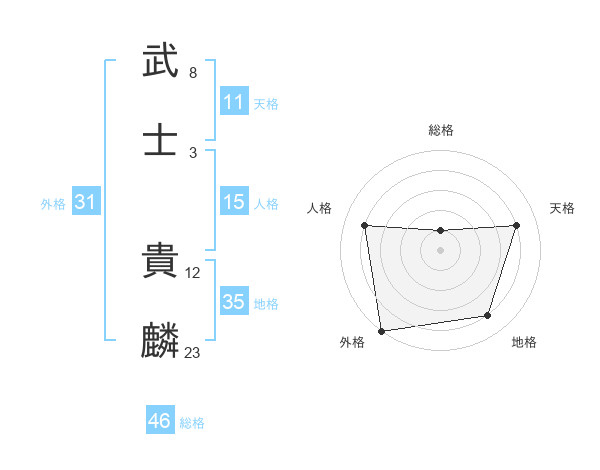 武士 貴麟さんを姓名の画数から五運を鑑定