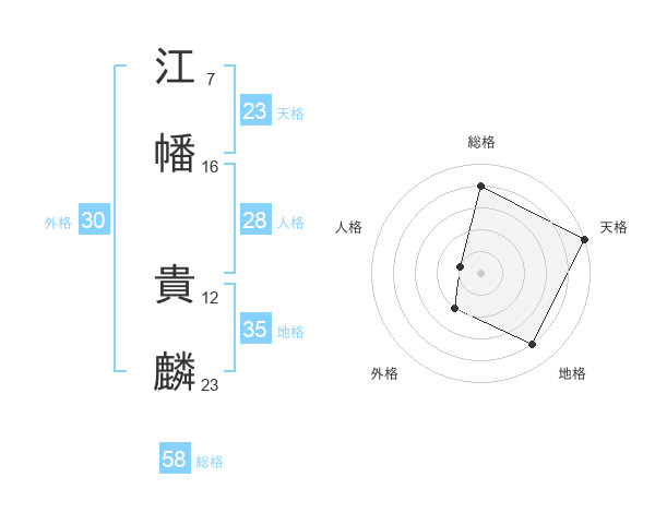 江幡 貴麟さんの天格は23画の5点!