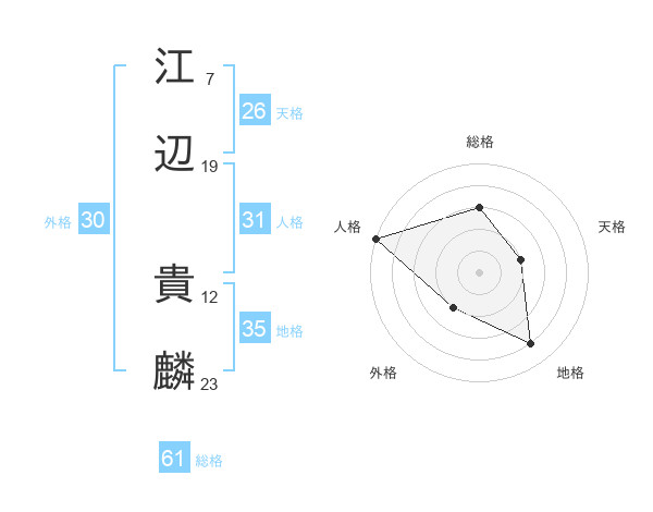 江辺 貴麟さんの総格は61画の3点!
